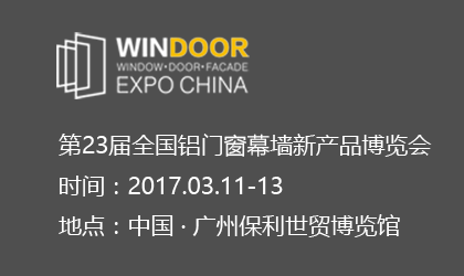 2017年3月11日,第23屆全國鋁門窗幕墻新產(chǎn)品博覽會(huì)在廣州保利世貿(mào)博覽館開幕,我公司將參加,展位號(hào)為6H02。屆時(shí)期待大家的光臨!